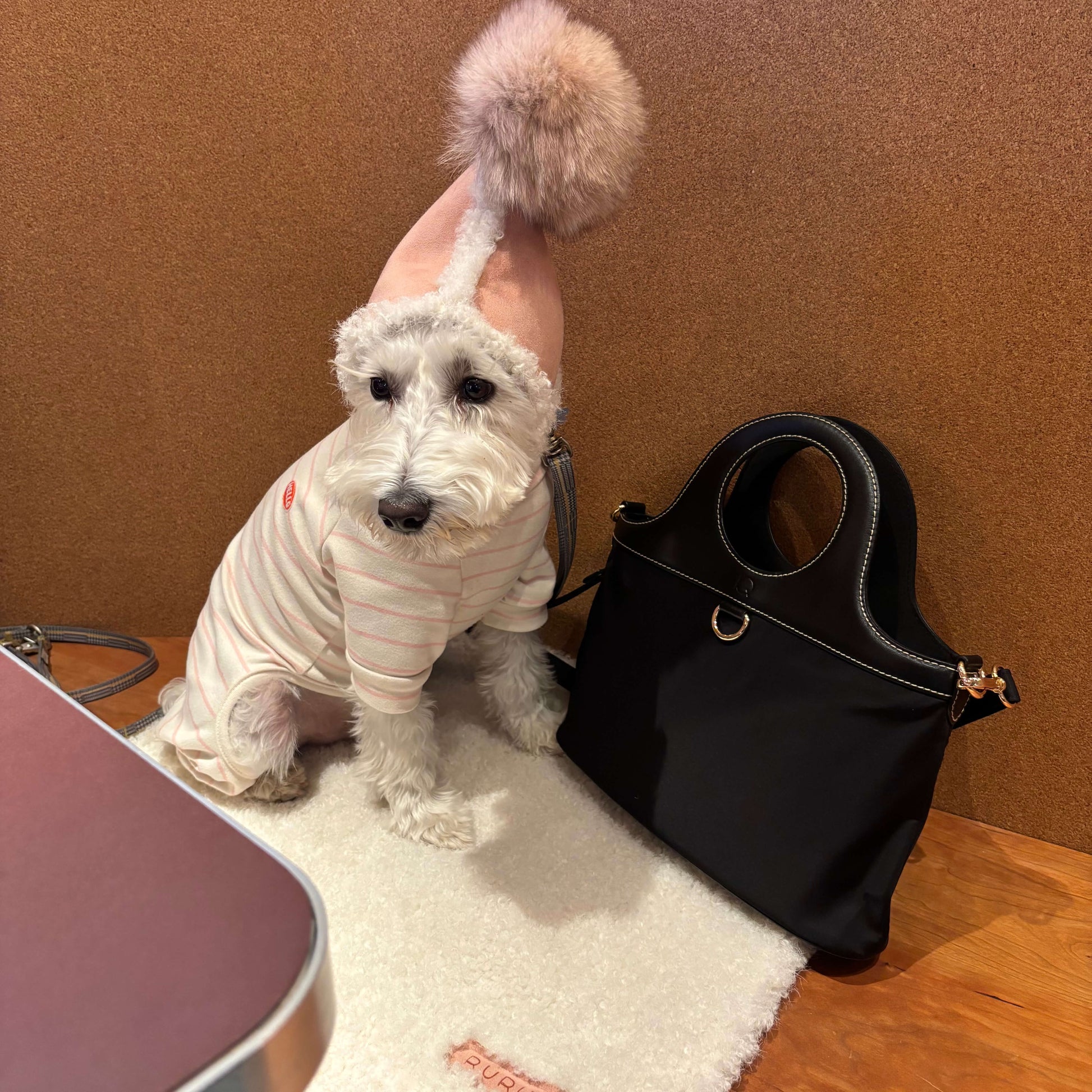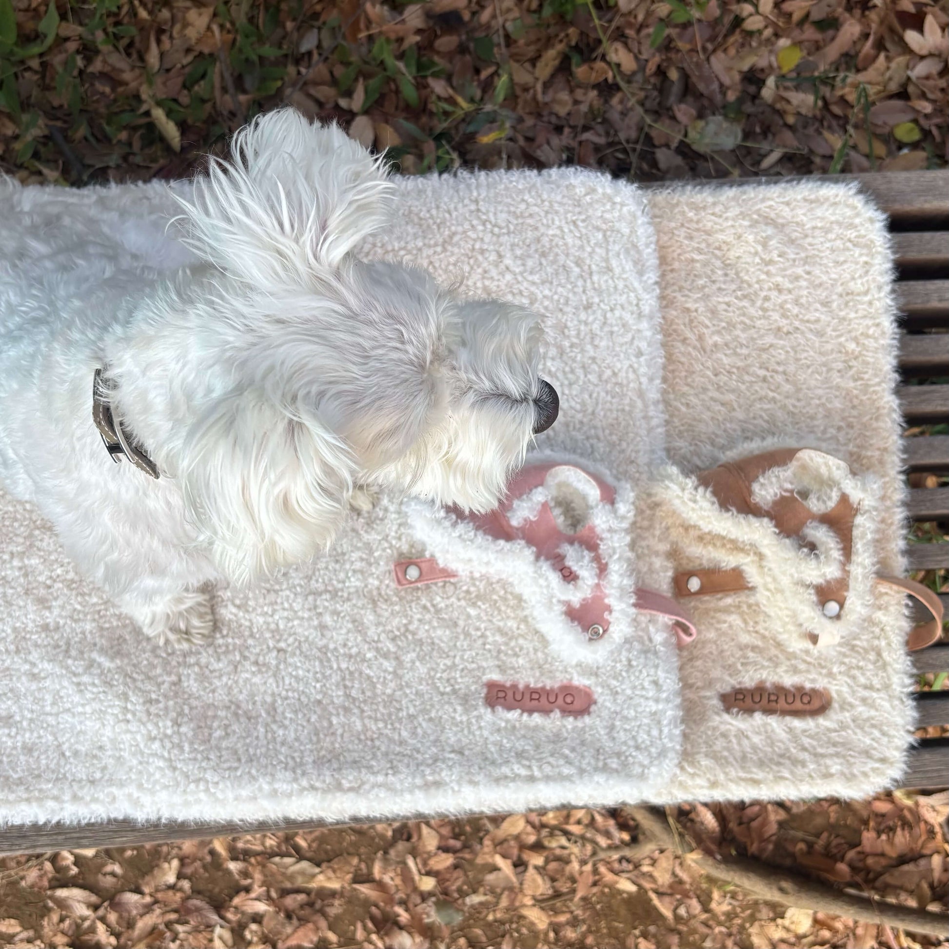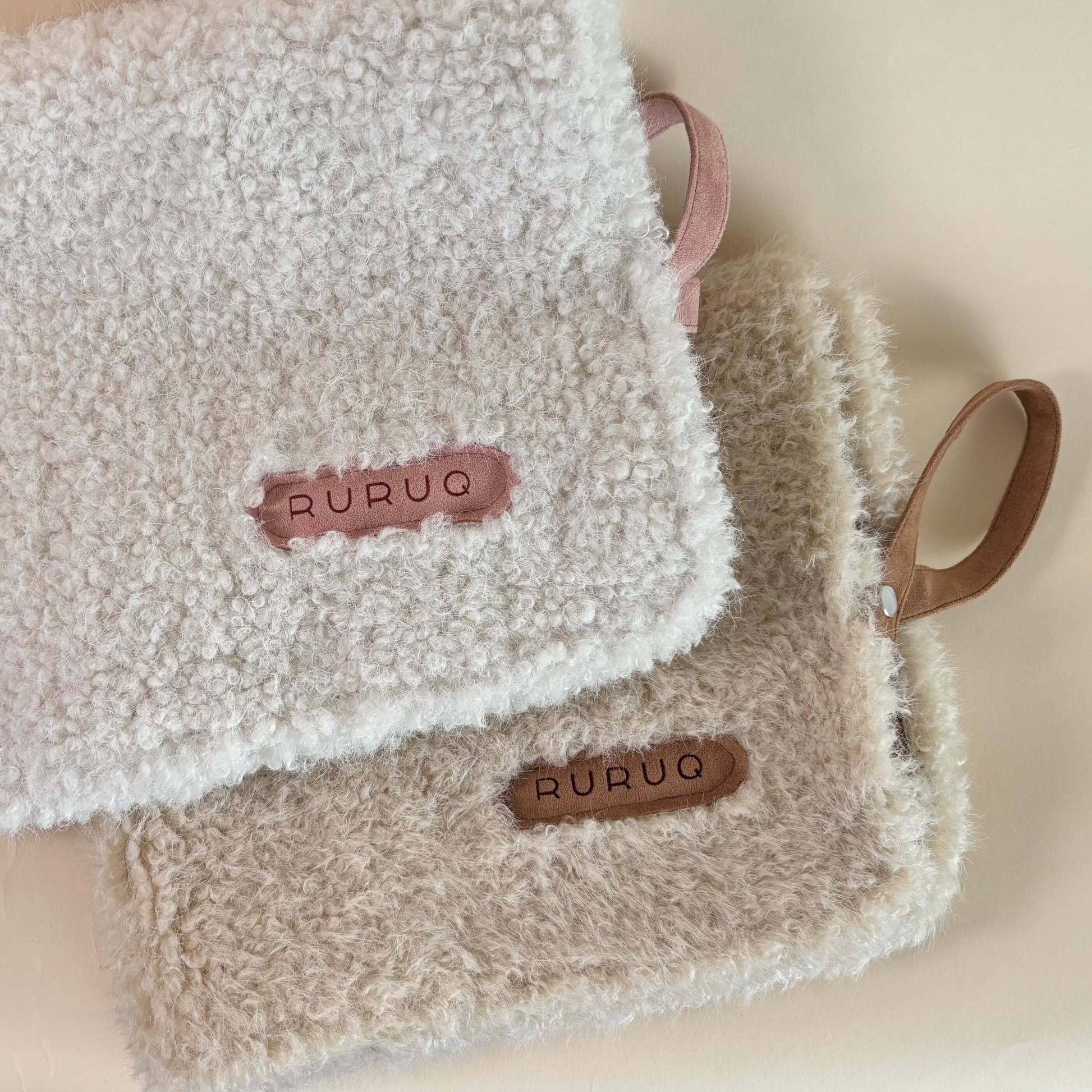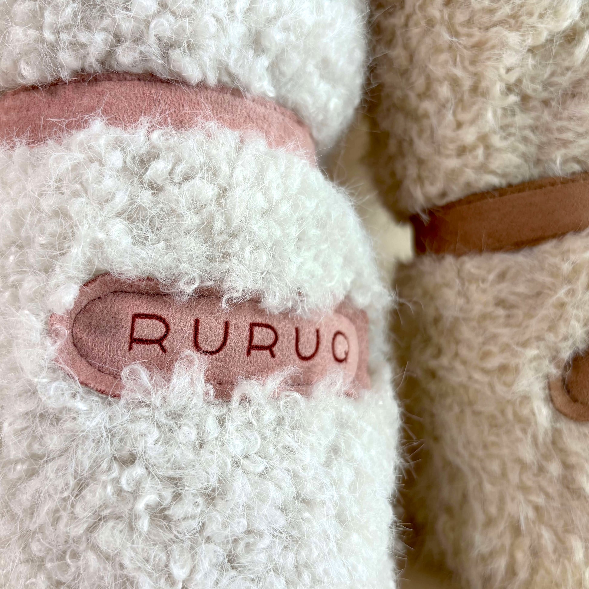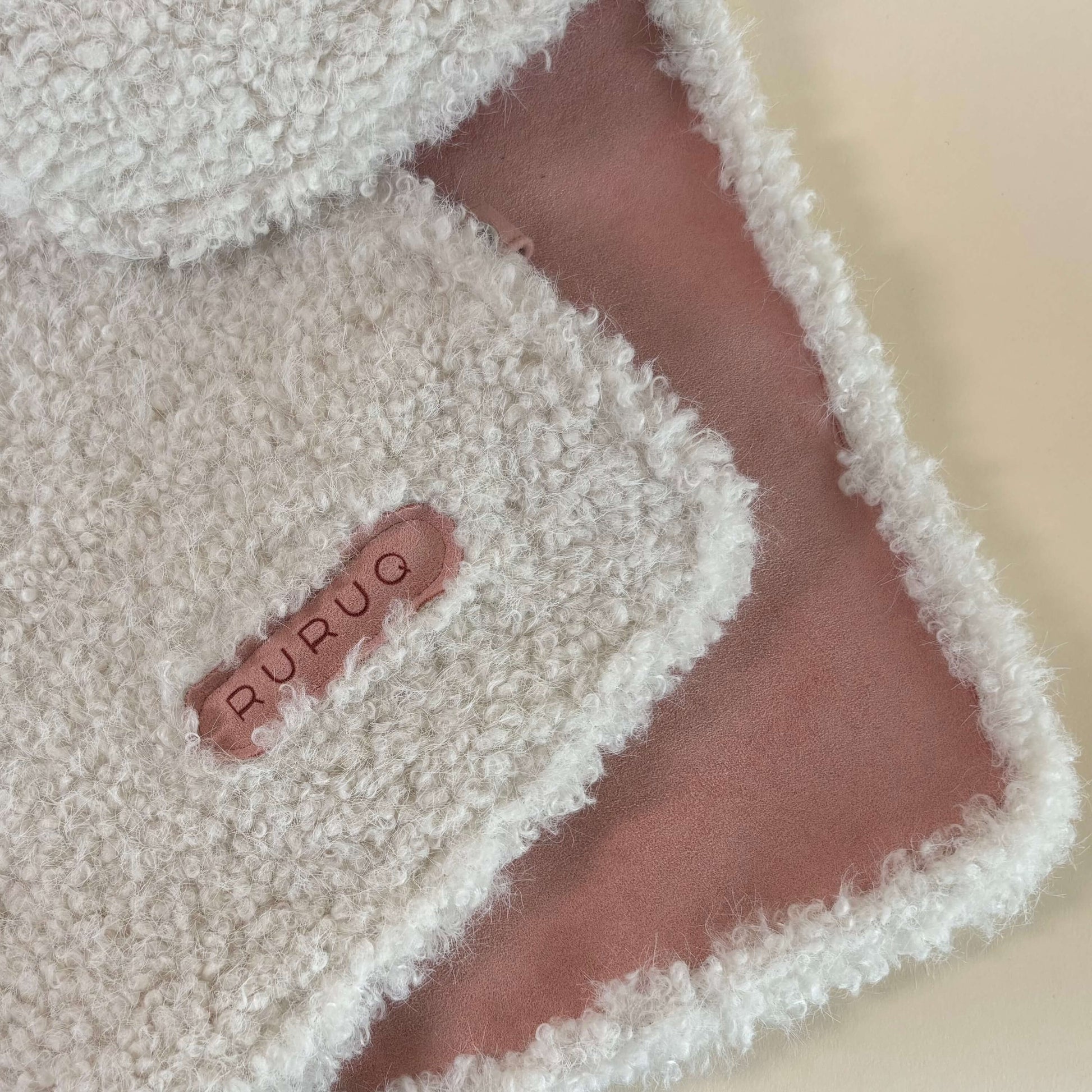 ふんわりとしたフェイクファーと、滑らかなフェイクスエードを組み合わせた、