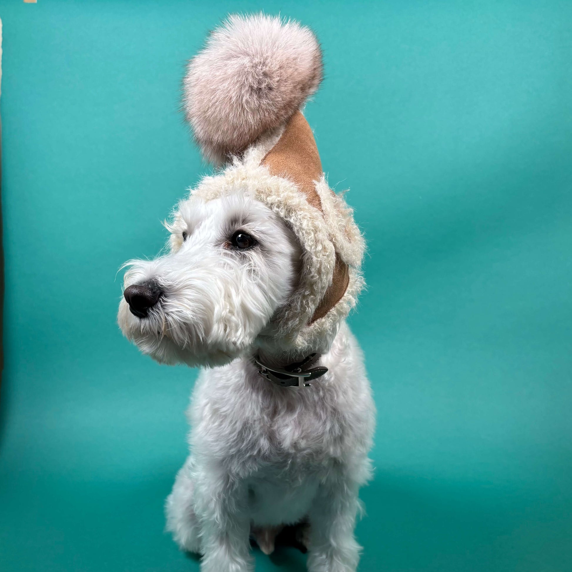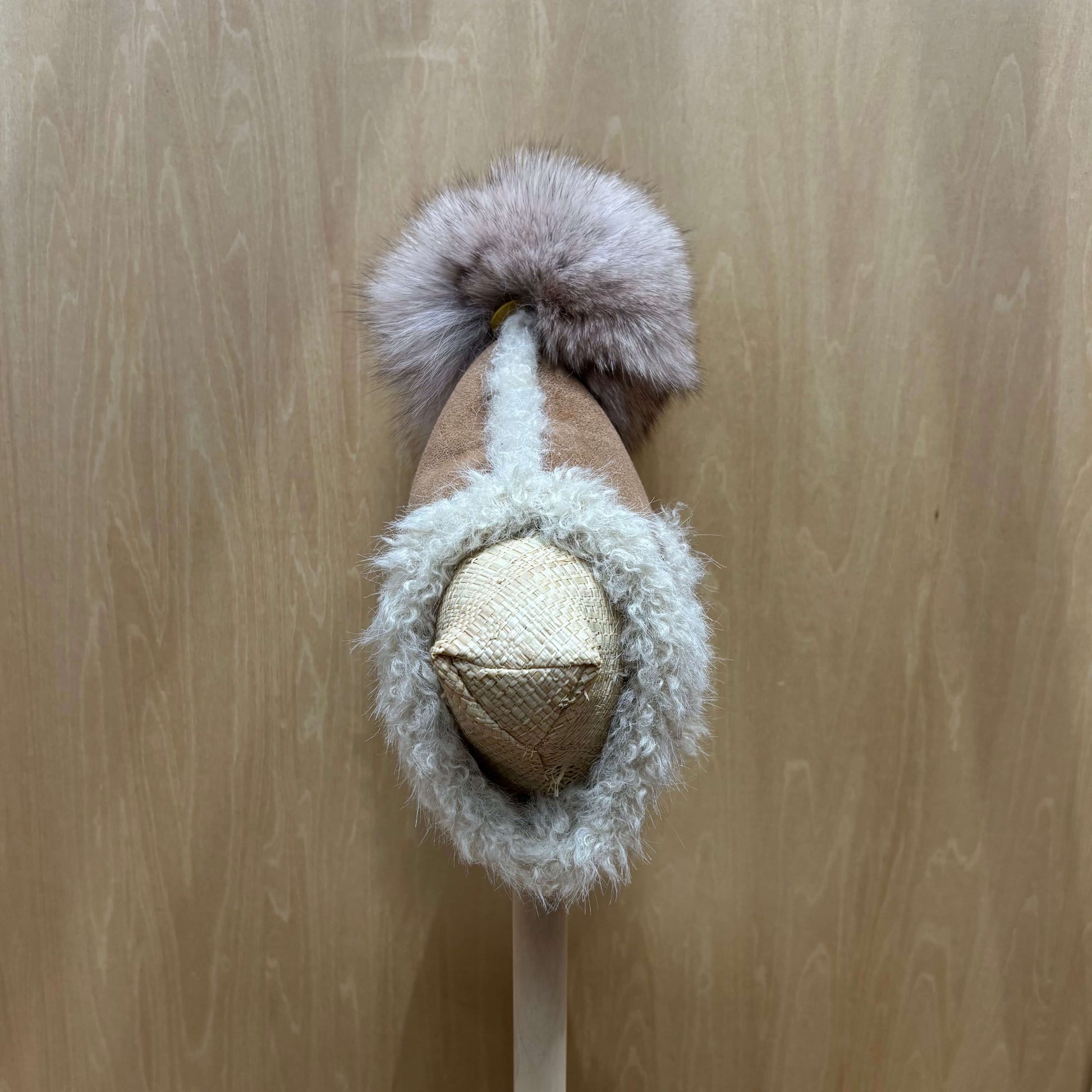 トップにあしらわれたボリュームのあるファーポンポンは付け替え可能。